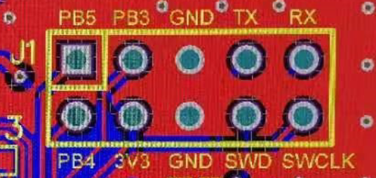 温馨小提示:挥码枪背面有引脚提示信息,挥码枪与 GDK3 的连接与线的颜色没有关系的哟,而且要注意 GND、SWD、SWK 是在 TOP SIDE 层哦。
