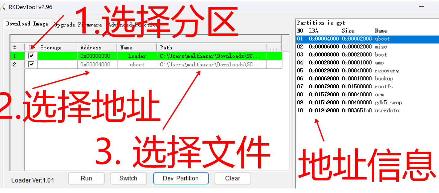 这里以烧录uboot为例,瑞芯微烧录工具可以右键添加或删除分区