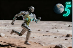 插上电源后,GDK5的主CPU先运行U-Boot,会显示启动徽标,然后启动Linux内核,会显示GDK5的开机画面:一个机器人在月球上奔跑的形象。