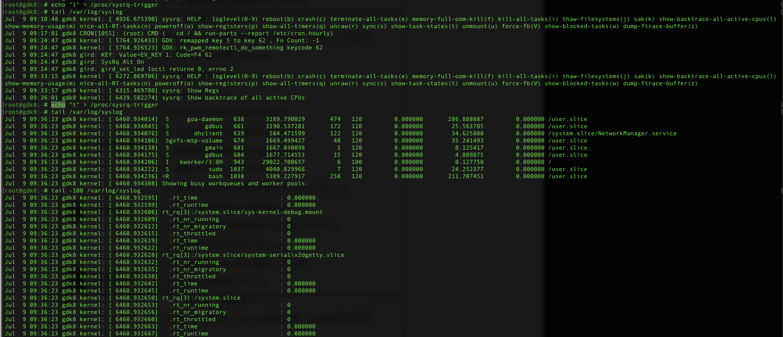 当然,最底层的动作其实如下,向/proc/sysrq-trigger写命令(头两个命令l p暂时无输出):