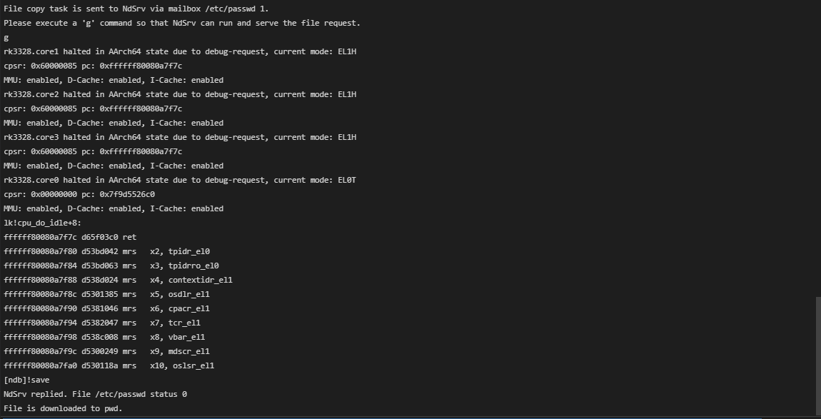 - 在Nano Code内核调试中,成功中断内核之后,您就能在命令行中输入命令来执行操作了。