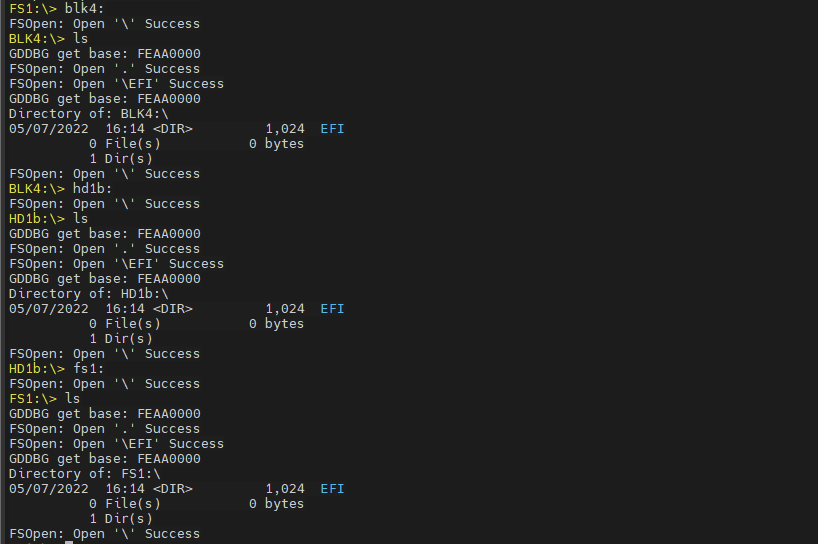 FS0: Alias(s):HD0b:;BLK1: PcieRoot(0x0)/Pci(0x0,0x0)/Pci(0x0,0x0)/NVMe(0x1,32-03-00-00-00-00-00-00)/HD(1,GPT,9DD431F3-1E15-584E-987D-827DD40C2E49,0xF000,0x200000)